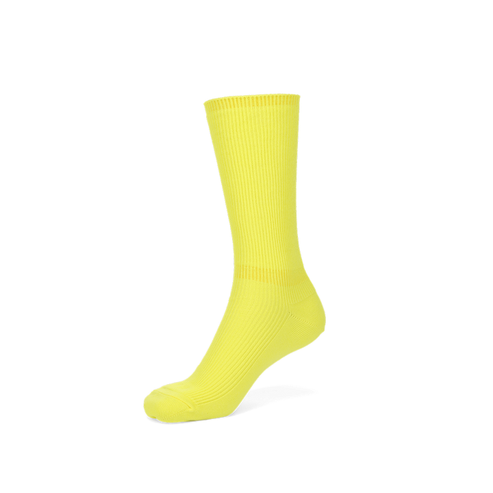 The vivid neon color of the Ribbed Neon Color Crew Socks is suitable for the coming season. Whether you wear them loosely or tightly, they go well with any shoe such as pumps, sneakers, sandals and boots.