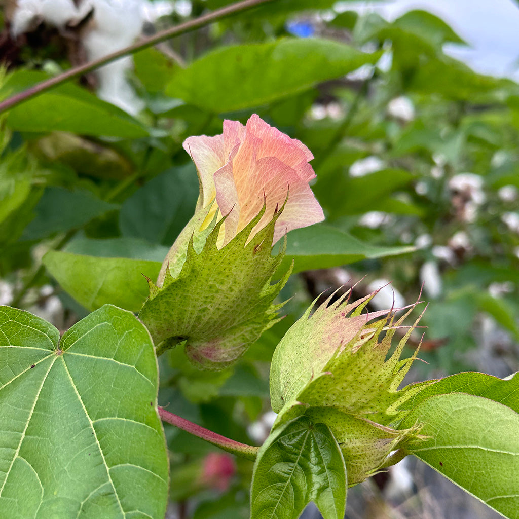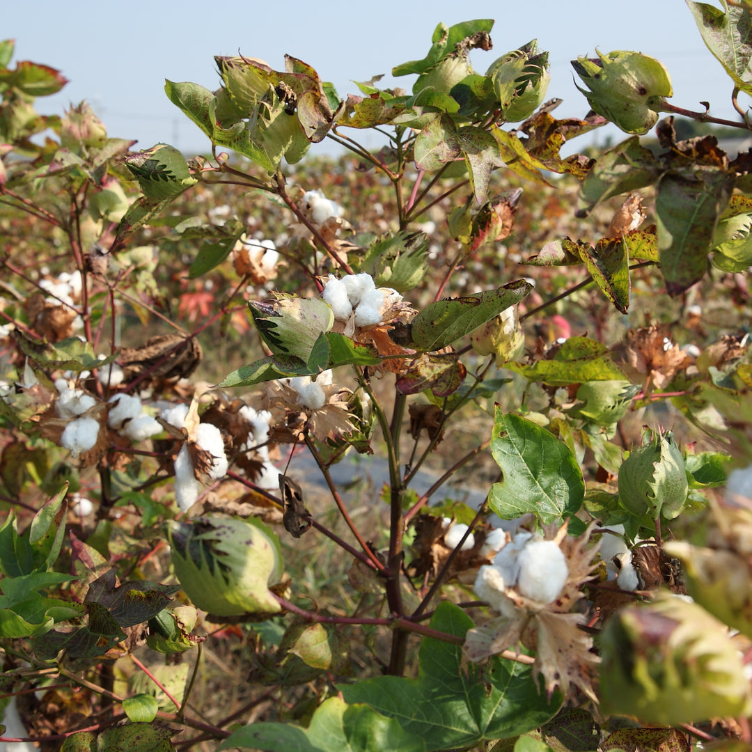 After cotton flowers bloom, they bear fruit, and when they pop, cotton is produced. Organic farming is environmentally friendly, and we wait until the stems and leaves have withered before we begin harvesting. To avoid damaging cotton ball fibers naturally grown, people hand-pick each of them.