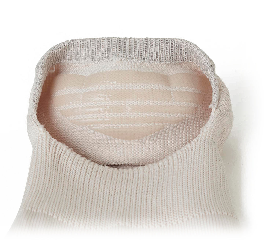 Compared to the common sock, our socks are knitted using much more thread, making the heel larger. We also blend elastic material into the sock during our knitting process.