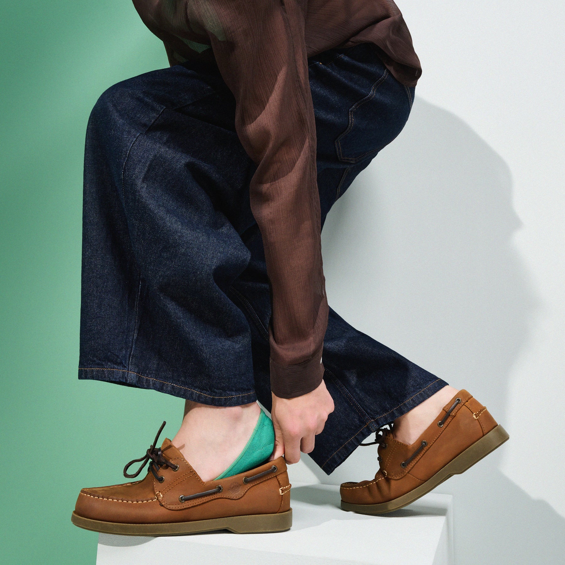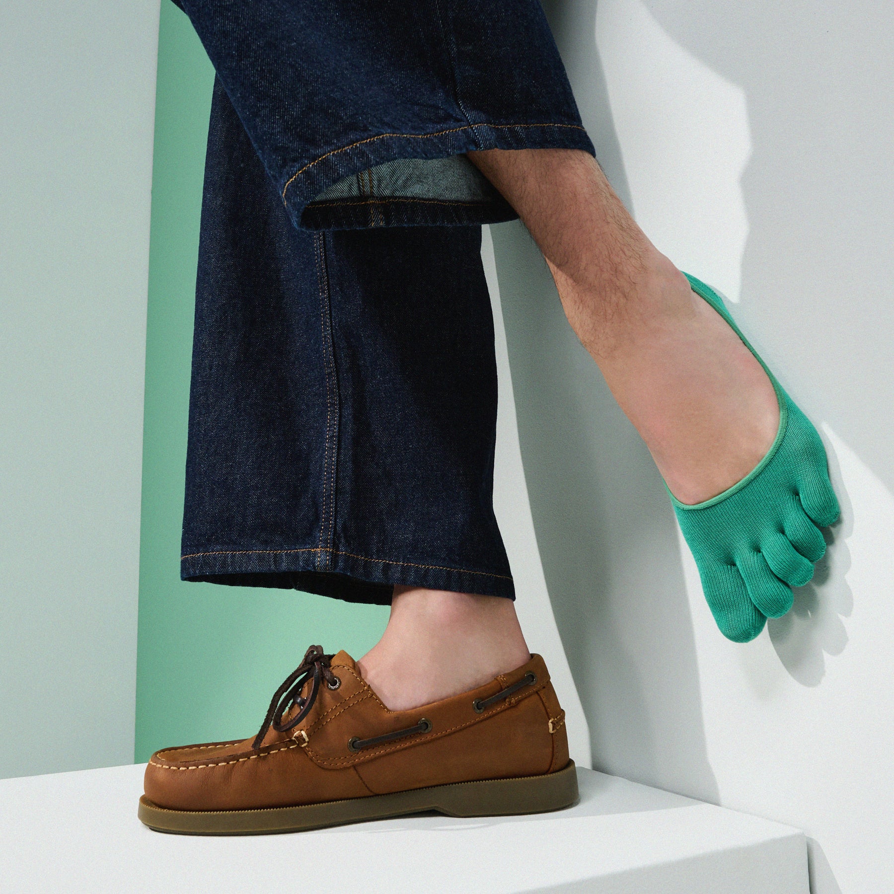 Through Tabio's production process, Toe and Tabi socks may have threads that stick out between the toes. However, these threads are not defective; they strengthen the structure of the toe socks and help to keep the socks durable. We advise leaving them as they are since cutting these threads may cause holes and weaken the integrity of the sock.